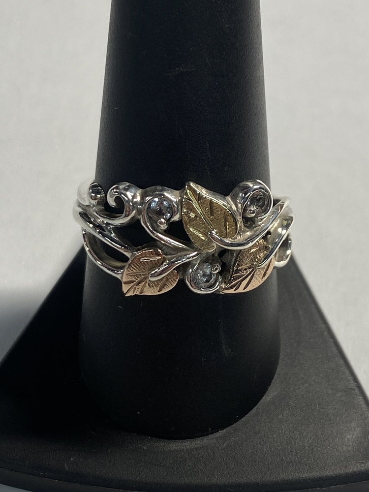 BHS 925 3.87g Ring w/ 3 Leaves & 3 Clr Stns - S9.5