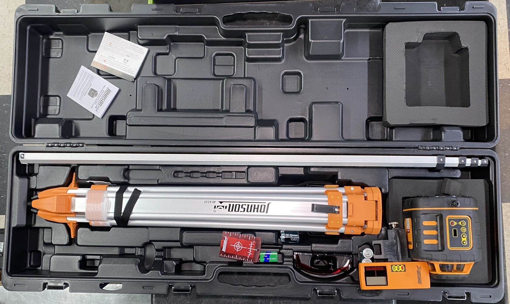 Johnson 40-6539 Laser Level Rotary w/ Tripod - Measuring Stick Accs in Hard Case
