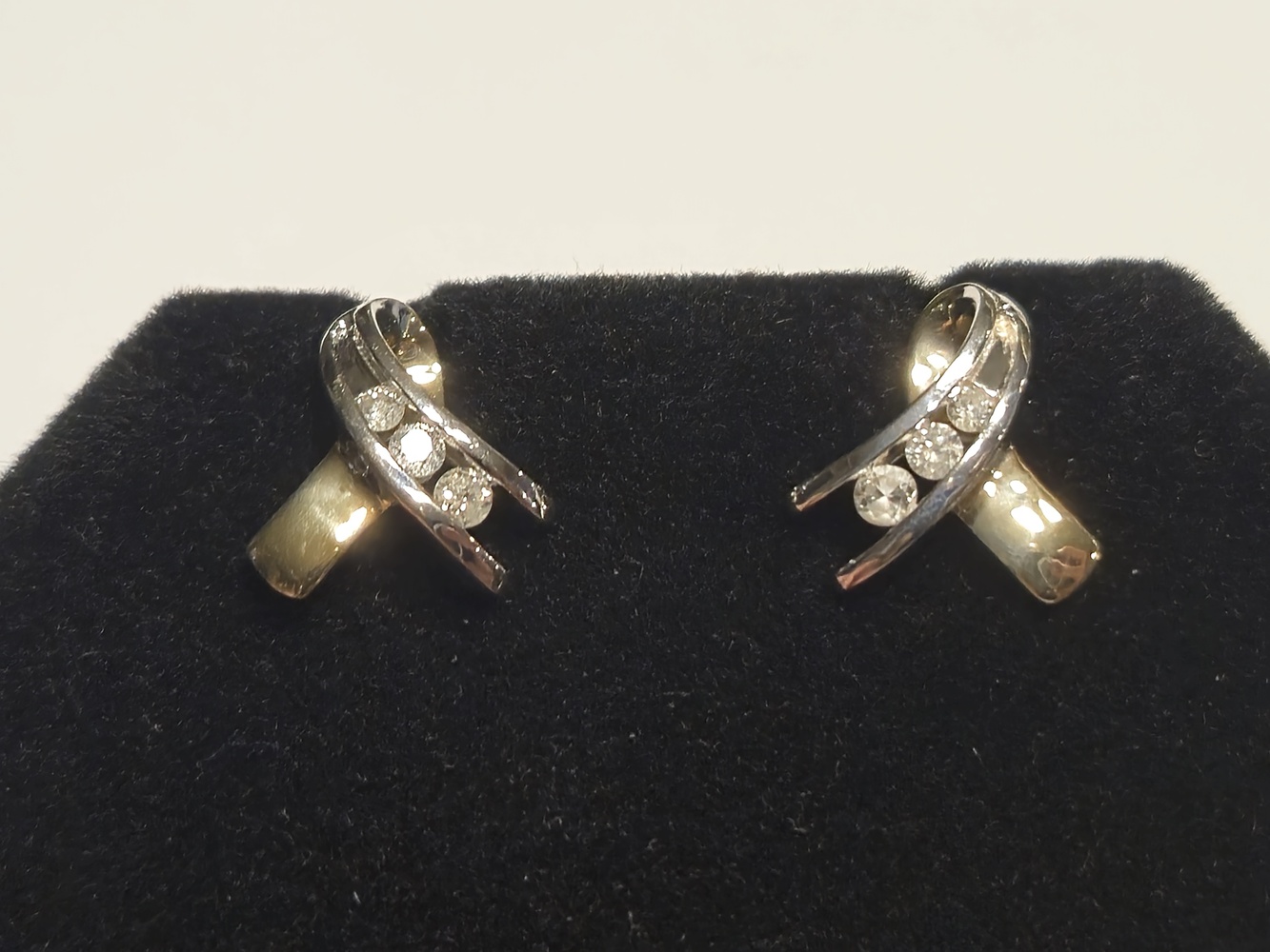 Two-Tone 10kt 2.40g Earrings Ribbon Design w/ 3 Dias